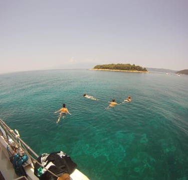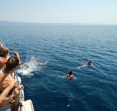 Enjoy the sea , the crystal clear waters . We will sail to the open sea in order to admire the view and to get a fresh breeze. It will give us both thrills .Enjoy your day sailing to Skopelos (Mama mia beach, etc) or/and around the island of Skiathos (Lalaria, depends on the weather), Tsougrias, Arkos, etc. and discover some of the most stunning beaches. In this daily cruise you will swim in crystal waters and you can snorkeling . Top catering services are available to savour the local cuisine. Our luch on board is prepared with lots of Love and the finest ingrediens. You want to find as many adventures as you can. The cruise will offer a lot of exciting opportunities for your adventurous heart.