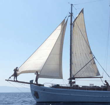 So we sail in the wind into the night and consider – at sea – the incredible stars, or we explore a cave on a steep cliff with the dinghies. We sit in a tavern with our feet in the sand and look at our yacht turning on the anchor, take a hike to a castle or a mountain nearby or snorkel at the nearby reef.At night we usually anchor in quiet bays or in front of small towns. In the morning, you get a cup of coffee and then jump into the water directly from the boat.