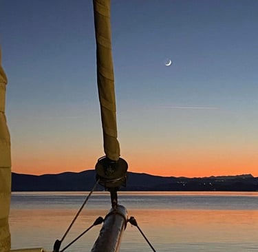 The light turns soft and golden, the air carries the scent of salt and summer, and the sea glows as if kissed by fire. On board our traditional wooden schooner, time slows, the world fades, and beauty takes over.